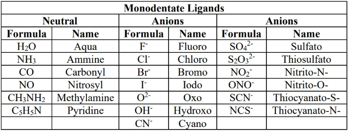 - ligand (denoted as L) is a Lewis base (electron pair donator)