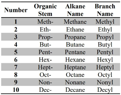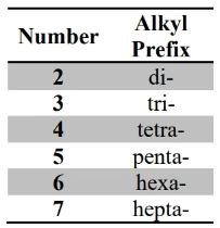 - numerical positions of substituent molecules on the longest & most-substituted chain