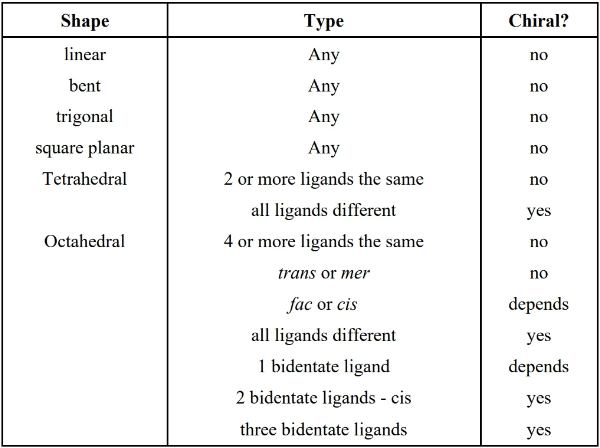- if carbon (the stereocenter) is bonded to 4 different groups, then the molecule is chiral