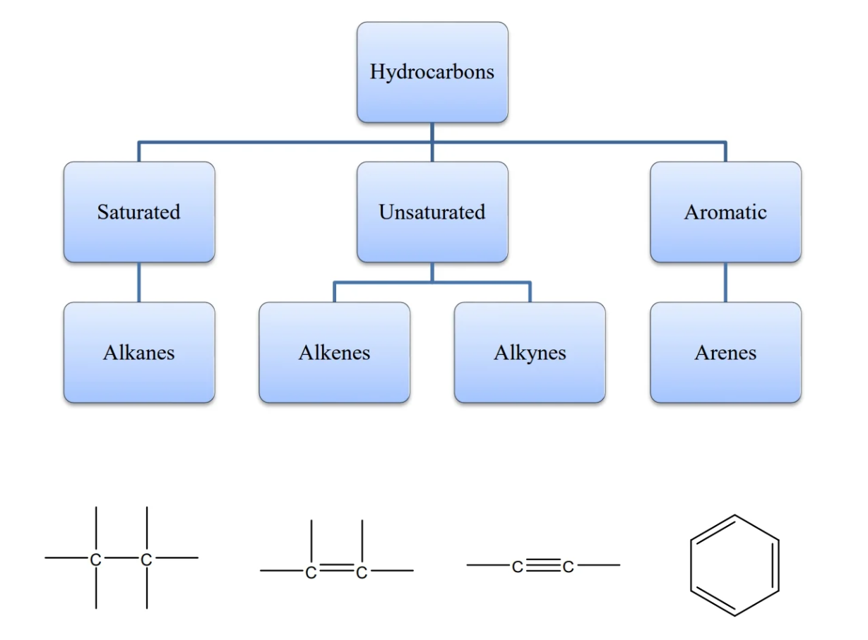 - An alkane is of the form . If an organic molecule has fewer hydrogen than an alkane with the same carbon count, then the molecule is not an alkane, and the number of missing hydrogens is indicative of whether or not double or triple bonds exist. An alkane is considered fully saturated (i.e. with hydrogens, halogens, groups, etc).