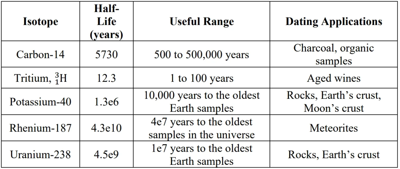 U-238 decays to stable lead isotrope when the molten it’s in solidifies. Ratio of Pb-206/U-238 determines the age of the rock.