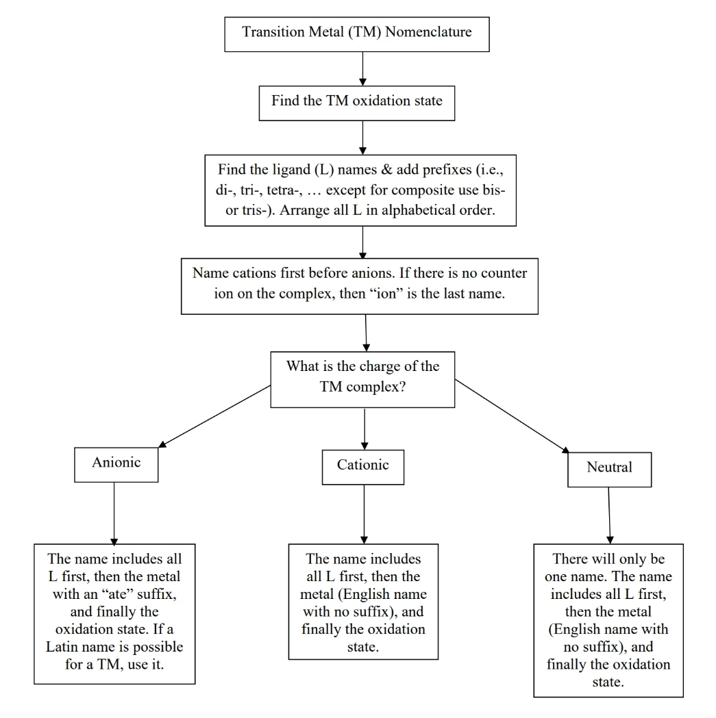 - coordination compound: formed by transition metal (TM) ions + ligands + counter ions; general term for neutral compounds containing transition metals