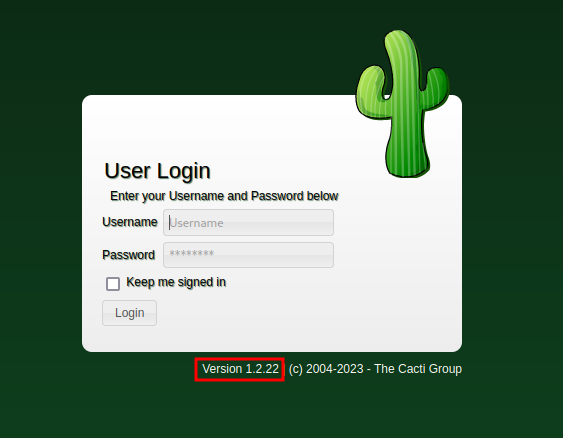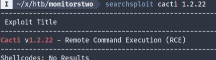 Cacti is on version 1.2.22, which has a CVE: