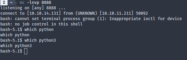 The netcat reverse shell sucked since I couldn’t upgrade it due to a lack of Python: