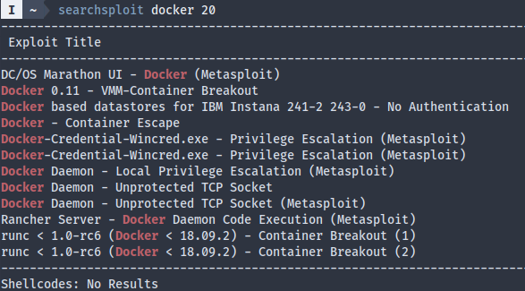 I didn’t see anything interesting on searchsploit, since most vulns have to do with container escape, but we’re already on the host: