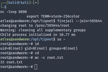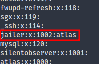 If we could somehow somehow pivot to atlas (unrestricted shell) who is a member of the jailer group, then we could potentially exploit firejail.