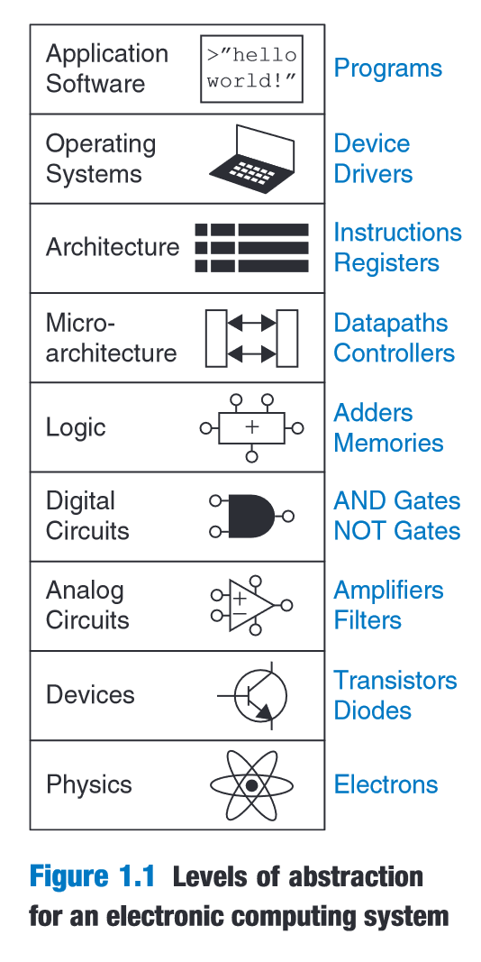 “The architecture level of abstraction describes a computer from the programmer’s perspective.” (Harris and Harris, 2016, p. 15)
