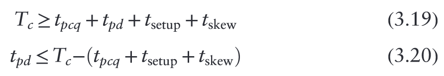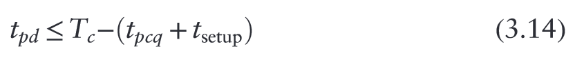 “The maximum delay constraint limits the number of consecutive gates on the critical path of a high-speed circuit, because a high clock frequency means a short clock period.” (Harris and Harris, 2016, p. 154)