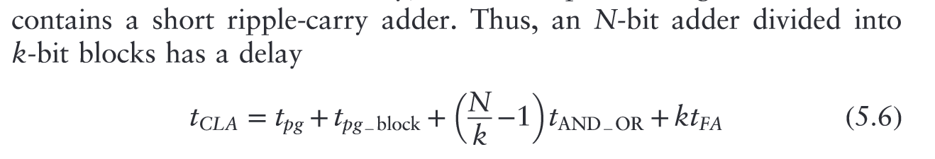 N-bit CLA adder divided into k blocks has a delay defined by the above.**