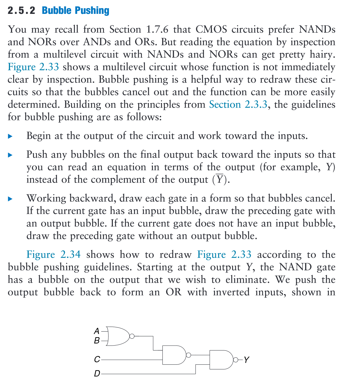 “The short path through the circuit, shown in gray, is from input D to output Y. This is the shortest, and therefore the fastest, path through the circuit” (Harris and Harris, 2016, p. 100)