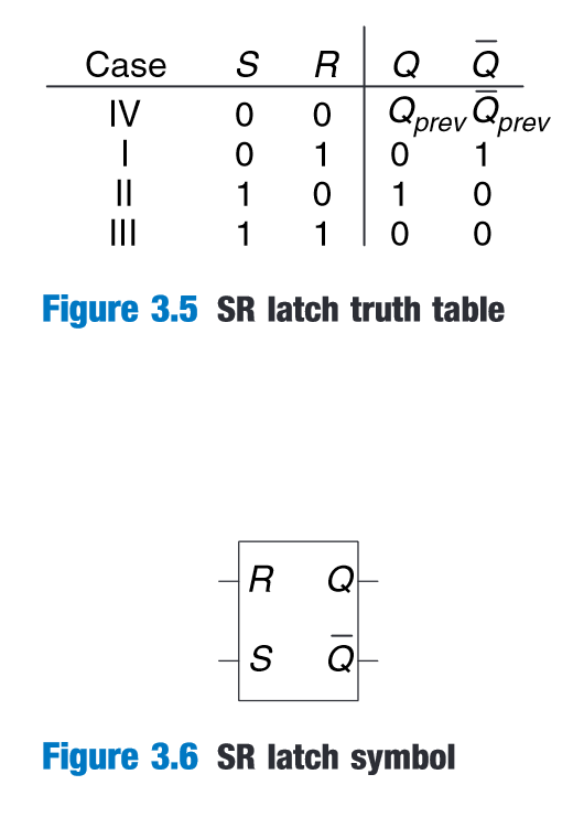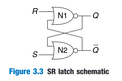“A subtle point is that the circuit has a third possible state with both outputs approximately halfway between 0 and 1. This is called a metastable state” (Harris and Harris, 2016, p. 119)