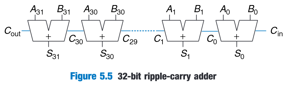 “The ripplecarry adder has the disadvantage of being slow when N is large.” (Harris and Harris, 2016, p. 249)
