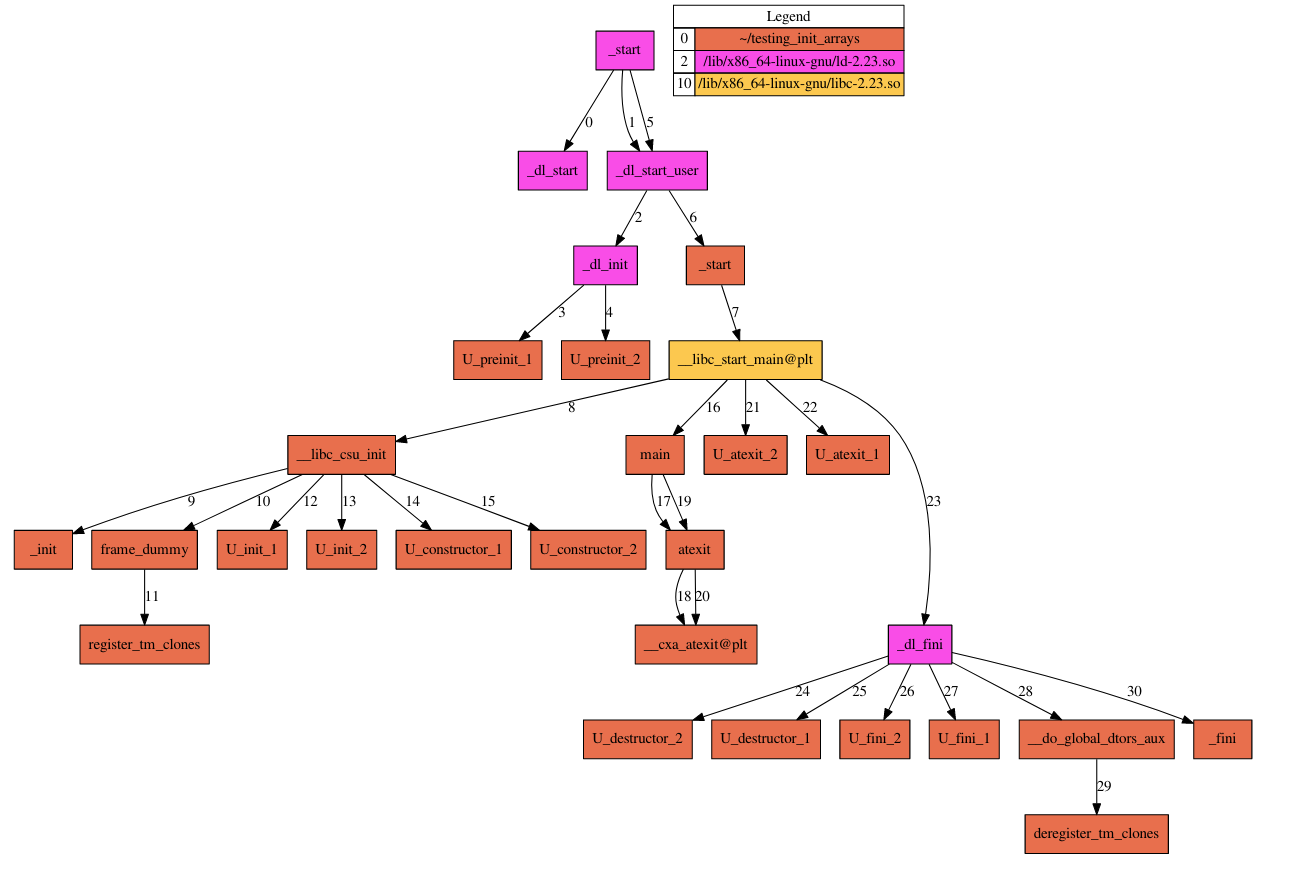 glibc (GNU C Library) is the C runtime library of GNU, which implements standard library functions used by C programs. An ELF linked against glibc has the following call graph (not sure where I got this from):