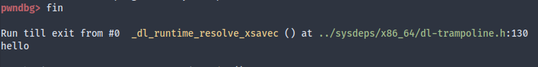 Thanks to Unicorn Engine’s emulation, we can see that puts@plt tries to jump to the address in the GOT (puts@got.plt), but since the GOT entry isn’t populated yet, it contains a pointer back to the next instruction in puts@plt which pushes an index of the function in PLT (in this case 0, since its the first and only function in .plt), and jump to the top of .plt to resolve the address of puts using _dl_runtime_resolve_xsavec.