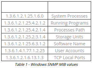 The following image contains interesting MIB values of MS Windows SNMP: