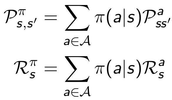 A policy-indexed MDP is an MDP where the state transition matrix and reward function is redefined in terms of a policy function. The missing superscript indicates that the action taken by the agent is dictated by the policy.